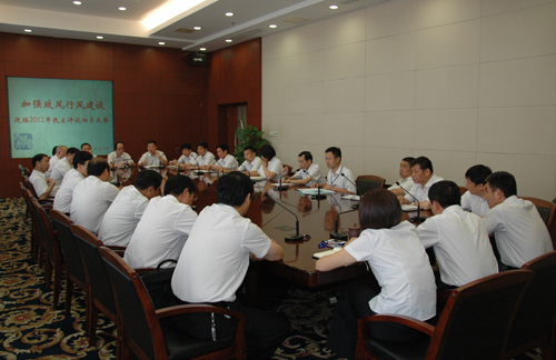 根據(jù)《江蘇省住房城鄉(xiāng)建設(shè)廳2012年民主評(píng)議城市供水行業(yè)政風(fēng)行風(fēng)工作實(shí)施方案》的精神要求。6月28日,公司召開“加強(qiáng)政風(fēng)行風(fēng)建設(shè) 迎接2012年民主評(píng)議”動(dòng)員大會(huì),公司有關(guān)部門、科室、下屬公司近30人參加了會(huì)議。