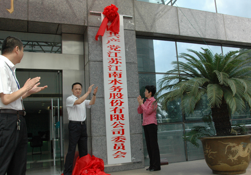 儀式上,龔國(guó)賢代表公司,對(duì)前來(lái)參加儀式的江陰市委常委、組織部部長(zhǎng)錢(qián)文琴及相關(guān)領(lǐng)導(dǎo)表示熱烈的歡迎!他指出,市委決定成立江南水務(wù)黨委,這既是對(duì)公司過(guò)去工作的極大肯定,更是對(duì)公司今后工作的極高期待。在市委、市政府的的正確領(lǐng)導(dǎo)下、在全體水務(wù)人的共同努力下,江南水務(wù)將全力打造中國(guó)水務(wù)標(biāo)桿企業(yè),全力確保安全優(yōu)質(zhì)供水,全力推進(jìn)企業(yè)又好又快發(fā)展,為我市建設(shè)現(xiàn)代化濱江花園城市和率先基本實(shí)現(xiàn)現(xiàn)代化作出新的更大的貢獻(xiàn)。隨后,錢(qián)文琴、龔國(guó)賢共同為江南水務(wù)黨委成立揭牌,查建標(biāo)、龔國(guó)賢為各支部贈(zèng)送書(shū)籍,沙建新宣讀《關(guān)于成立“周松慶班組”的通知》,查建標(biāo)為“周松慶班組”授旗。