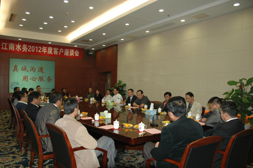 會(huì)上,吳耀東首先向與會(huì)代表表示熱烈地歡迎,感謝他們長(zhǎng)期以來對(duì)江南水務(wù)的發(fā)展給予的關(guān)心和支持,并介紹了公司一年來的生產(chǎn)經(jīng)營(yíng)、城鄉(xiāng)供水一體化建設(shè)、安全保供等情況。中心營(yíng)業(yè)所負(fù)責(zé)人就2012年度的營(yíng)收管理、供水服務(wù)、抄收一體化等情況和今后一個(gè)階段的工作計(jì)劃向代表們作了詳細(xì)介紹。