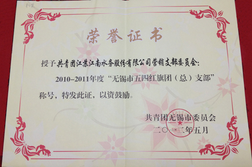 公司營銷團(tuán)支部榮獲“無錫市五四紅旗團(tuán)支部”稱號