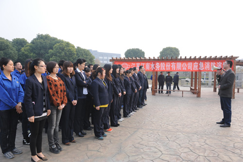 根據(jù)公司年度應(yīng)急預(yù)案演練的計(jì)劃, 11月19日,公司在肖山水廠組織開展了一次消防應(yīng)急演練?偨(jīng)理沙建新、副總經(jīng)理高立、相關(guān)部門負(fù)責(zé)人及50多名員工參加演練活動(dòng)。