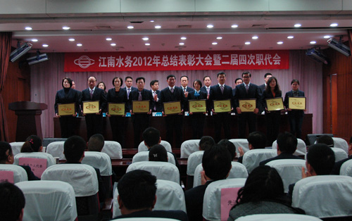 1月21日,公司在14樓會議室召開2012年度總結(jié)表彰大會暨二屆四次職代會。公司黨委書記、董事長龔國賢作重要講話,總經(jīng)理沙建新作題為《提振信心 凝聚合力 奮發(fā)實(shí)干開創(chuàng)水務(wù)事業(yè)新局面》的2012年度總結(jié)報(bào)告,并詳細(xì)部署2013年度工作,明確了今年的各項(xiàng)工作目標(biāo)任務(wù)。會議由副總經(jīng)理高立主持。