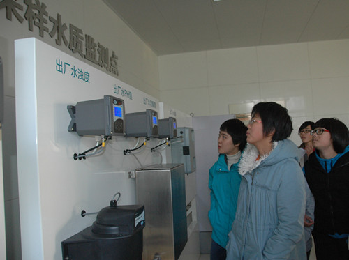 在公司解說員的帶領(lǐng)下,師生們井然有序地參觀了整個制水工藝流程,親近體驗由渾濁原水變?yōu)槌吻宄鰪S水的全過程,親身感受現(xiàn)代化的凈水技術(shù)。在開放式的教學(xué)中,學(xué)生們熱情高漲,有的認(rèn)真記錄著,有的不時提出問題,“凈水過程中,鈣鎂離子有變化嗎?”“自來水用什么消毒?遇到上游污染情況,怎么處理呢?”……面對這些專業(yè)問題,現(xiàn)場解說員都一一作了解答。隨后,師生們又來到供水服務(wù)調(diào)度中心,參觀智能化的供水調(diào)度系統(tǒng),從而增強(qiáng)了他們對長江自來水的認(rèn)知。