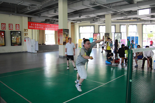比賽當(dāng)天,參賽的、不參賽的員工就早早地來到體育中心,換上輕便運(yùn)動(dòng)裝的參賽隊(duì)員更是搖身一變成了活力四射的運(yùn)動(dòng)員。本次友誼賽分為男子單打、男子雙打、女子單打、混雙4個(gè)項(xiàng)目,采取三局兩勝淘汰制,先得21分為勝者。