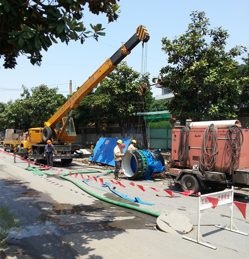 此次施工涉及范圍廣,為最大限度降低施工對供水和道路交通的影響,市政工程公司精心組織,嚴(yán)密部署,提前安排人員在公園路做好閥門開挖安全圍擋工作,然后按照既定方案,于當(dāng)天上午7點準(zhǔn)時關(guān)閉總閥,在已挖開的總管上開放水口。但因公園路總管地勢低、管線長,施工時內(nèi)部自然壓力較大,導(dǎo)致預(yù)先設(shè)定的泄壓孔無法完全割開。市政公司主要負(fù)責(zé)人了解情況后,親赴現(xiàn)場坐鎮(zhèn)指揮,結(jié)合實際情況調(diào)整施工方案,迅速增派施工人員在暨陽山莊西側(cè)DN1500支管上開口,以減小總管壓力。經(jīng)過緊張而有序地施工,下午4點30分順利完工,比預(yù)期時間提早了一個半小時。