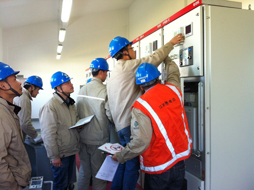 為不影響用戶的正常用水,本次預試采用不停產(chǎn)方案,從而增加了操作的復雜性和難度。設備部、市政公司、機電維修中心會同澄西水廠經(jīng)過多次商議,共同制定方案,并進行多次現(xiàn)場核對檢查、模擬操作,保證預試過程不斷電、不跳閘。在各部門精心準備和通力協(xié)作下,預試順利進行,共完成7臺變壓器、14個35KV配電柜、34個6KV配電柜的檢測。預試過程中,發(fā)現(xiàn)供電隱患兩處,工作人員及時排除,設備恢復正常運行狀態(tài)。