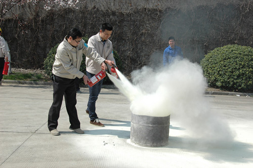 演練開始,公司安全監(jiān)察部人員首先就干粉滅火器的特點(diǎn)及使用方法向參加演練人員進(jìn)行了詳細(xì)的講解。接下來,參演人員兩人一組,對(duì)事先準(zhǔn)備好的火源實(shí)施滅火,參演人員快速跑向起火地點(diǎn),手持滅火器瓶體輕搖幾下,使筒內(nèi)干粉松動(dòng),隨后拔掉保險(xiǎn)銷,左手持瓶,右手提著壓把,在距火焰兩米左右的地方,右手用力壓下壓把,噴射干粉覆蓋燃燒區(qū),直至把火全部撲滅。滅火過程正確、迅速、有序,達(dá)到了預(yù)期要求。