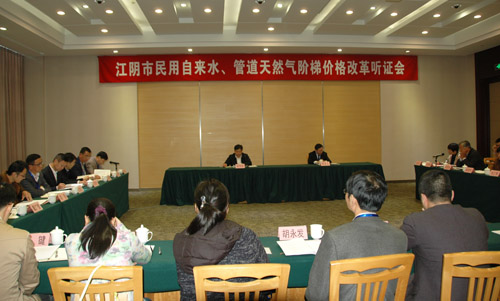 11月13日下午,市物價(jià)局召開江陰市民用自來水階梯價(jià)格改革聽證會(huì),就居民生活用水價(jià)格實(shí)施階梯價(jià)格制度的必要性和可行性進(jìn)行了公開聽證。市人大、市政協(xié)、市政府有關(guān)部門人員,消費(fèi)者和經(jīng)營(yíng)者代表共24人參加了聽證會(huì)。