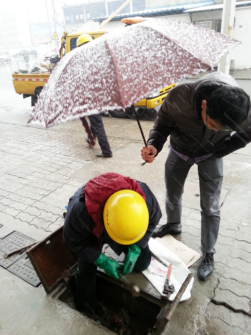 1月31日,漫天飛雪,在搶修現(xiàn)場,用戶為正在搶修的澄水員工劉曉東打起了一把傘。這把傘,不僅遮住了風雪,更像冬日里一盞暖燈,溫暖著大伙的心,激勵著搶修隊員加緊奮戰(zhàn),回報用戶對我們的理解與信任。