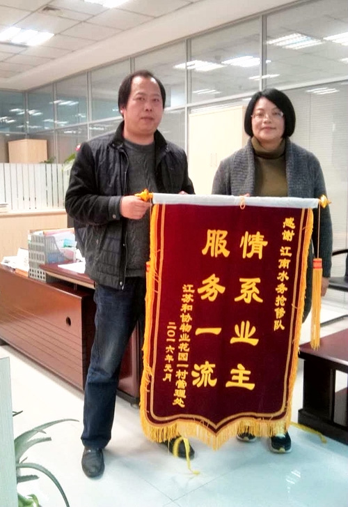 1月28日,利港社區(qū)及港酈物業(yè)給利港客服中心送來一面 “夜以繼日忙搶修 熱心服務(wù)為用戶”的錦旗。