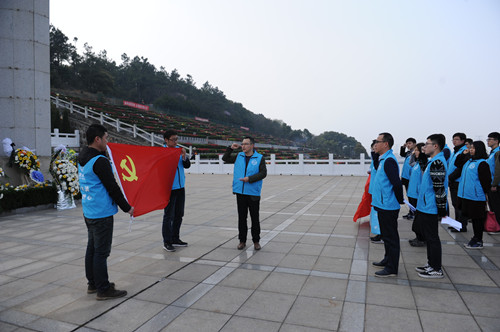 “我志愿加入中國(guó)共產(chǎn)黨,擁護(hù)黨的綱領(lǐng),遵守黨的章程,履行黨員義務(wù)……”洪亮堅(jiān)定的入黨誓詞在土地山革命烈士陵園響起。
