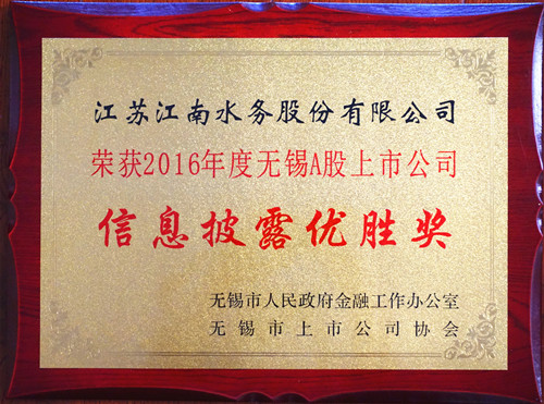 公司喜獲2016年度無錫市優(yōu)秀A股上市公司“信息披露優(yōu)勝獎”
