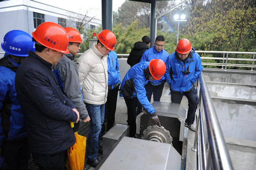 “調(diào)試開始!”12月15日,隨著小灣水廠調(diào)試總指揮一聲令下,DN1600進(jìn)水閥門開啟,長江水由配水井源源不斷的進(jìn)入到絮凝反應(yīng)池中,小灣水廠深度處理聯(lián)動(dòng)調(diào)試正式開始。