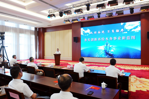 公司董事長、總經理華鋒作題為《砥礪奮進 不負韶華——務實創(chuàng)新再繪水務事業(yè)新藍圖》的半年度工作報告。他指出,2020年是高水平全面建成小康社會之年,是“十三五”規(guī)劃收官之年,也是我市“六攻堅六突破”三年行動起步之年。上半年,面對國內外疫情的沖擊影響,公司在市委市政府的正確領導下,緊緊圍繞董事會確定的年度目標任務,聚團結之力,行務實之舉,一手抓防控,一手抓發(fā)展,各項工作保持了平穩(wěn)的發(fā)展勢頭。一、一以貫之,聚力優(yōu)質供水高質量。牢守主陣地,提升供水管理水平;掌握主動性,提升質量管理標準;瞄準主方向,提升供水服務效率。二、鍥而不舍,統(tǒng)籌重點工作高質量。試點鰣魚港路污水管道非開挖修復施工工程;建立培訓和后備人才培養(yǎng)體系;制定《標后管理制度》;完成肖山、澄西水廠深度處理工程65%的工程量;編制完成老舊管網改造決策辦法初稿;制定二次供水設備全生命周期管理辦法;建立水量變化、漏損監(jiān)測體系;獲得專利3項、軟件著作權1項等。三、咬定目標,深耕排水管理高質量。按照規(guī)范要求,運行維護南閘街道、徐霞客鎮(zhèn)、敔山灣等區(qū)域共計637公里排水管網、124座污水泵站,完成清疏管網352.9公里,清掏15829座污水檢查井、雨水箅。四、持之以恒,壓實安全管理高質量?椕芘挪榫W,疫情防控常態(tài)化;織密安全網,應急管理全覆蓋。五、一絲不茍,彰顯內控管理高質量。完善和優(yōu)化內控手冊,進一步規(guī)范內控體系;完善合同管理,控制合同風險。六、馳而不息,融入文化建設高質量。堅持初心不改,舉旗幟;堅持以人為本,聚民心。