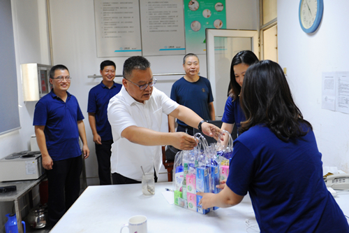 8月12日,市總工會副主席趙云飛一行來到公司小灣水廠慰問高溫下堅守崗位的一線職工,送上一份清涼,道一聲辛苦。公司工會主席周益獻陪同慰問。