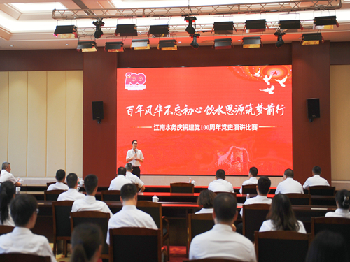 為隆重慶祝中國共產黨的百年華誕、喜迎國慶,9月30日下午,江南水務舉辦“百年風華不忘初心 飲水思源筑夢前行”黨史主題演講比賽。公司全體黨委委員、各黨支部黨員代表,共70余人參加活動。
